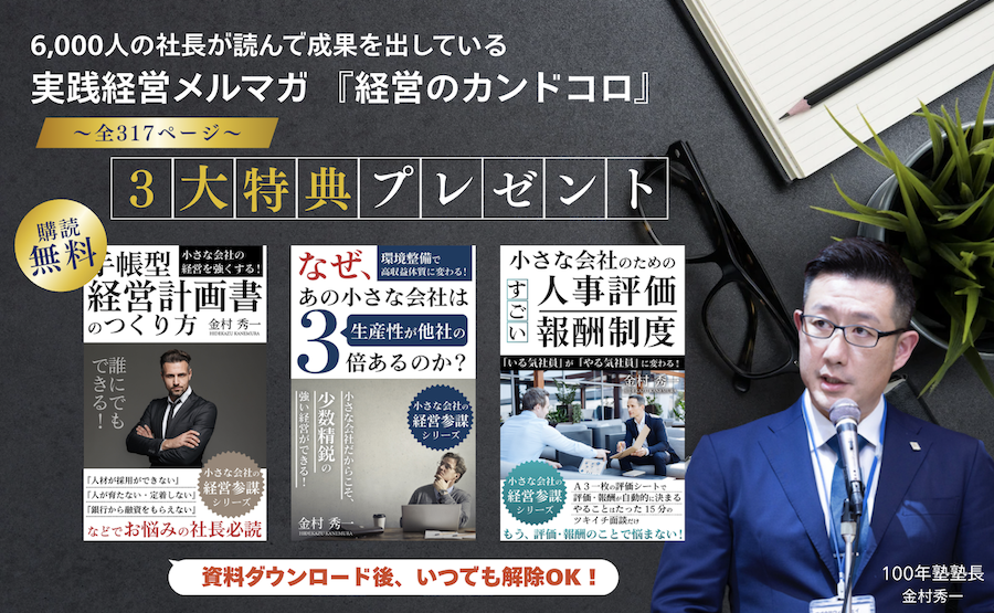 100年塾で実践しているノウハウをまとめた全317ページの3つの資料(PDF)をプレゼント!
